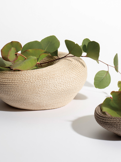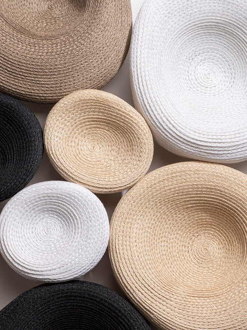 天然素材マニラ麻が幅広に組まれたブレードは、その乾いた質感が空間に新しいテクスチャーを呼び込み、静かな余白をもたらします。トレイとしても、壁掛けのオブジェとしても使える二つの顔を持ち、重ね方や組み合わせによって緩やかなリズムを生みます。